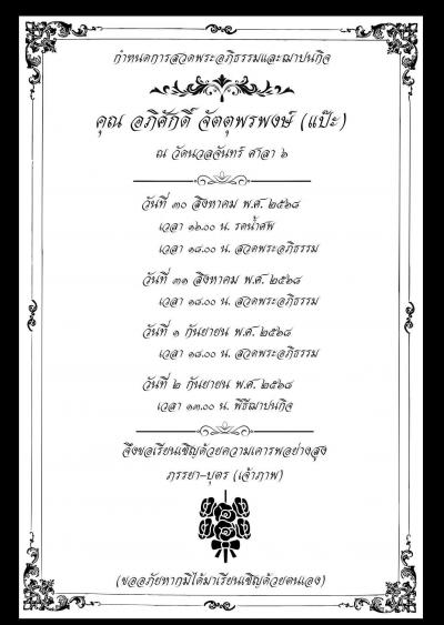 แรงดลใจ: ตอนเวลาเกือบสี่โมงเย็นของวันศุกร์ที่ผ่านมา(29 ส.ค.2568) ได้รับการแจ้งข่าวร้ายทางโทรศัพท์จาก น้องไมค์ บุตรชายคนเดียวของ พี่โด่ง(แป๊ะ):อภิศักดิ์ จัตตุพรพงษ์ วนศาสตร์รุ่น 42 ว่าคุณพ่อได้ถึงแก่กรรมแล้วเมื่อตอนเช้าของวันนี้ โดยนั่งหลับไปอย่างไม่มีวันกลับที่บ้านพักแบบคาดไม่ถึง ขอให้ช่วยแจ้งข่าวให้กับเพื่อน พี่ และน้องชาวป่าไม้ที่คุ้นเคยกันด้วย ซึ่งก็ได้พยายามแจ้งข่าวต่อไปยังพี่ๆวนศาสตร์รุ่น 42 และชาววนศาสตร์รุ่นอื่นอีกหลายคน เพียงแต่ยังขาดรายละเอียดเรื่องพิธีการ เพราะต้องติดต่อสถานที่จัดงานให้ชัดเจนก่อน